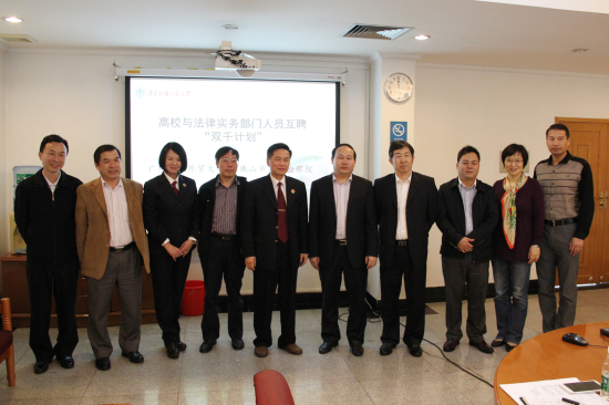 本网讯 11月17日,我校与佛山人民检察院相关人员就我校与佛山检察院法律务实部门人员互聘“双千计划”展开交流。佛山检察院反贪局副局长李建刚、政治处副主任陈广智、反贪局预防科副科长金艳及我校副校长阳爱民、教务处处长焦方太、法学院党委书记金良成等参与了交流会。会议由焦方太主持。