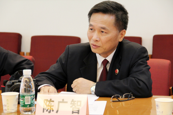 陈广智简要介绍了检察院的人员状况与下属区院的分布情况,同时他希望我校能将理论与实际更好地结合,联系检察院预防工作的实际,把法律预防宣教工作做得更好。李建刚提出六字目标——“学习、互补、致用”,他认为这项目有助于双方发挥优势,互相学习,希望与我校在理论与研讨方面进行更深层次的探讨。在互补方面,检察院作为全国司法改革试点单位之一,朱晔加入队伍能对研究关于部门法之间的关系、诉讼程序间出现的问题的解决方案以及对开展“家属安抚工作”等进行指导。在致用方面,他强调学校与检察院双方应加强实务性合作,如我校可提供人才资源与理论上的支持,为双方的合作增添新的亮点。
