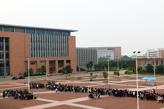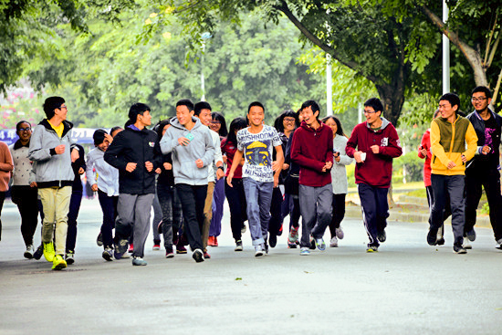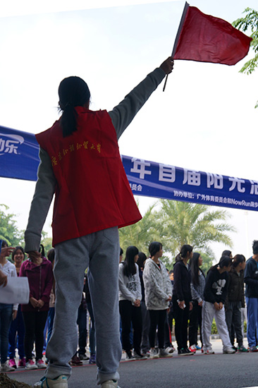 本网讯12月11日下午,广东外语外贸大学南校图书馆前的广场上,不时吹过阵阵寒风。但是这里却聚集了不少学生,他们有的穿着各自的班服,有的已经做起了热身运动。原来,“广外杯"第一届“阳光班跑”活动即将开始了。