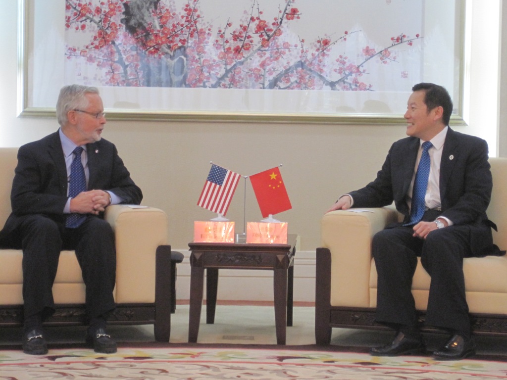 本网讯 12月12日下午,美国俄亥俄州立大学副校长威廉•布拉斯汀(William Brustein)、法学院院长阿伦•麦克斯(Alan Michaels)、法学院副院长劳拉•费南迪斯(Laura Fernandez)、中国办公室主任由超等一行来访我校。我校副校长方凡泉在南校区行政楼贵宾厅会见来宾。国际交流与合作处副处长吴俊峰、法学院副院长黄丽萍、商学院院长助理邱伟年等陪同会见。