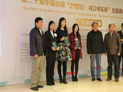 经过一番激烈角逐,最终,华南理工大学的李璐、广东外语外贸大学周冬妮、中山大学的胡悦三位同学分获本次比赛的冠亚季军,她们将代表广东省参加明年三月的全国总决赛。