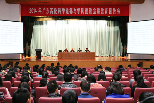 本网讯 科学技术的发展进步离不开严谨求实、开拓创新的科学精神。而当前学术界逐步蔓延开功利和浮躁的不良风气,对科技事业健康发展产生了消极影响,损害了我国的学术声誉和国际形象。12月12日下午,广东高校科学道德与学风建设宣讲教育报告会在广东省人民政府大礼堂举行。报告会邀请了中国工程院院士、建筑学家何镜堂,中国工程院院士刘人怀教授作专题报告。宣讲报告会由广东省学位委员会副主任委员、省教育厅副厅长王斌伟主持。我校49名博士研究生和51名硕士研究生参加了本次报告会。