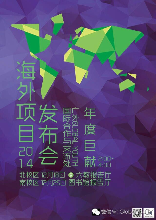 幸运的是,广外学子却有着许多的机会去领略世界各地的精彩。2013年,882名广外学子通过各类学生项目赴国境外交流,足迹遍布五大洲41个国家和地区。2015年即将到来,新一轮的项目选拔即将开始。为了让全校师生更加全面了解学校现有项目,了解广外学生在外的交流感悟,国际处联合GLOBAL YOUTH团队对交流生进行采访,并将分专题讲述参与各类交流项目学生的故事,描述异国他乡的学习生活,以及他们的心路历程。