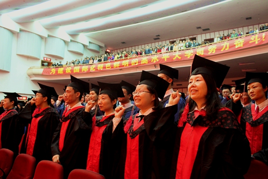 教师代表继教学院王荣在致辞中表达了对毕业生的厚望,叮嘱他们无论做人做事都要坚守诚信,敢于担当;坚持学习的优良习惯,汲取他人的优点;同时要继续坚持健康的生活方式,且不忘良知,在社会上有所为有所不为。