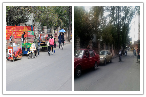 联合小组于会后第一时间到实地开展第一轮治理行动,重点整治清理我校北门外的占道经营、违章停车等情况。通过对相关人员进行有效劝说,对北门附近地区进行清场,使北门外占道经营、违停情况得以改善。