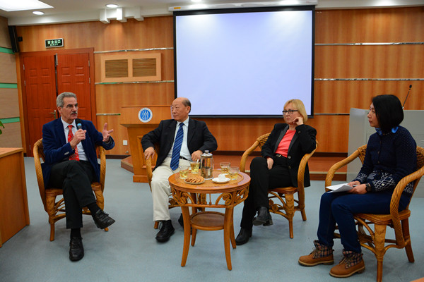 本网讯 在全球化语境下,国与国之间的往来逐渐增多,人们的文化身份也日趋多元,跨文化理解和沟通成为国际交流中至关重要的能力。12月22日到23日,在我校北校区第九教学楼103丝纺讲堂,海外名师“跨文化之旅”系列学术活动隆重举行。香港城市大学教授张隆溪、德国约翰尼斯•古腾堡大学(美因茨)教授Alfred Hornung和德国科隆大学教授Beate Neumeier出席了系列学术活动,同我校师生一起探讨了跨文化研究中的学术问题。该系列活动由我校英文学院主办,获国际交流处大力支持。