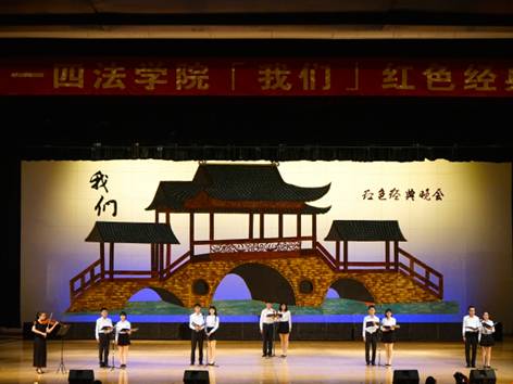 “我骄傲,我是炎黄子孙。我自豪,我是龙的传人”。法学院党建工作协调小组在《我们的中国梦》中深情并茂地歌颂了祖国的挺拔山川、清澈河水。那一句句响亮的回绕耳边的词句是他们对祖国满满的爱与自豪。