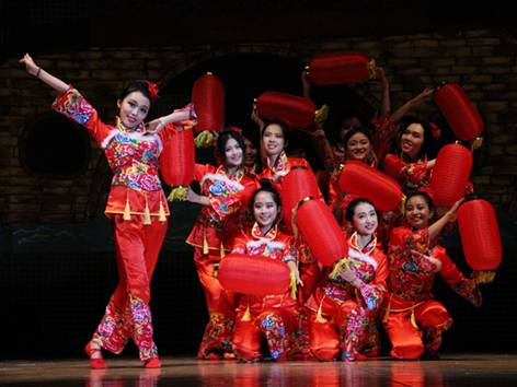 提着红灯笼,踏着轻盈的舞步
