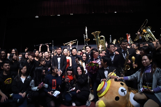 管弦乐团与校长合影留念
