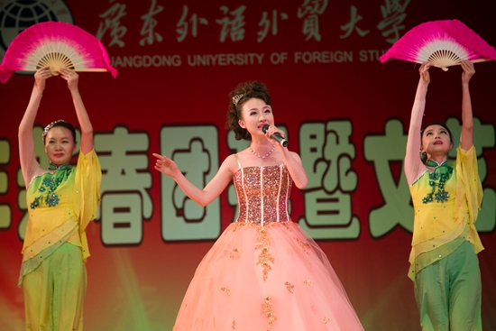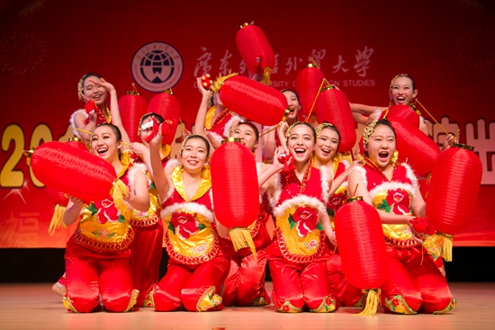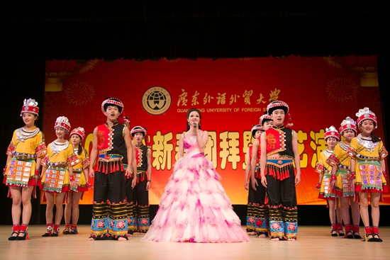 开场舞《中华全家福》保卫处舞狮队带来的《醒狮贺岁迎羊年》拉开演出序幕;艺术学院先后表演开场舞《中华全家福》、器乐表演《天鹅湖》和表演唱《大地飞歌》;根据广外建校外50周年校庆1号公告,由孙远雷、赵继伟作词,李志刚作曲,李秋玉和许俊浩演唱歌曲《重逢云山 筑梦广外》,为广外来50年华诞献上了浓浓的祝福。