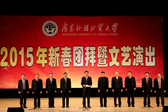 校党委书记隋广军,校长仲伟合,校党委副书记陈建平、卢景辉,副校长方凡泉、顾也力、石佑启、何传添、陈林汉、阳爱民等校领导出席,向过去一年来辛勤耕耘的全体教职员工、全校学生,向关心和支持广外建设和发展的全体离退休同志致以衷心感谢和新春的祝福。