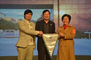 仲伟合代表学校致辞,他首先肯定了惠州校友会第一届理事会的工作成绩并对各位校友的付出表示感谢。他说,校友们坐在一起,就是一家人,因为大家都有一个共同的身份——广外人。他从“历史”“改革”“发展”“未来”四个关键词展开,介绍学校发展五十年的成绩并介绍了五十周年校庆的筹备情况。何传添代表学校向新任会长授校友会会旗。