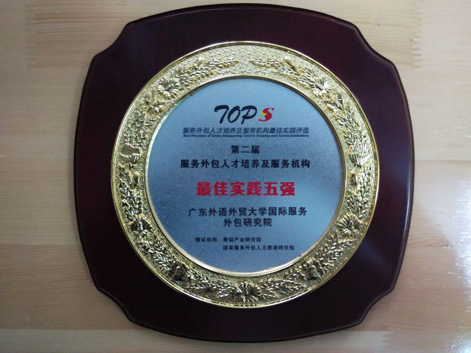 我校国际服务外包研究院在全国服务外包人才培养领域已取得卓越成绩。截止目前,已经编写出版教材30部,开发课件21门,培训服务外包人才近万人次。其中政府官员、企业家、企业中高层管理和技术人员7000余人、企业员工定制培训1000余人。有鉴于我校国际服务外包研究院在全国服务外包人才培养领域作出的贡献,“中国外包网”评委会特颁发“全国服务外包人才培养与服务机构——最佳实践五强”予以肯定。国际服务外包研究院副院长陈和应邀参加了会议,并接受了授牌。