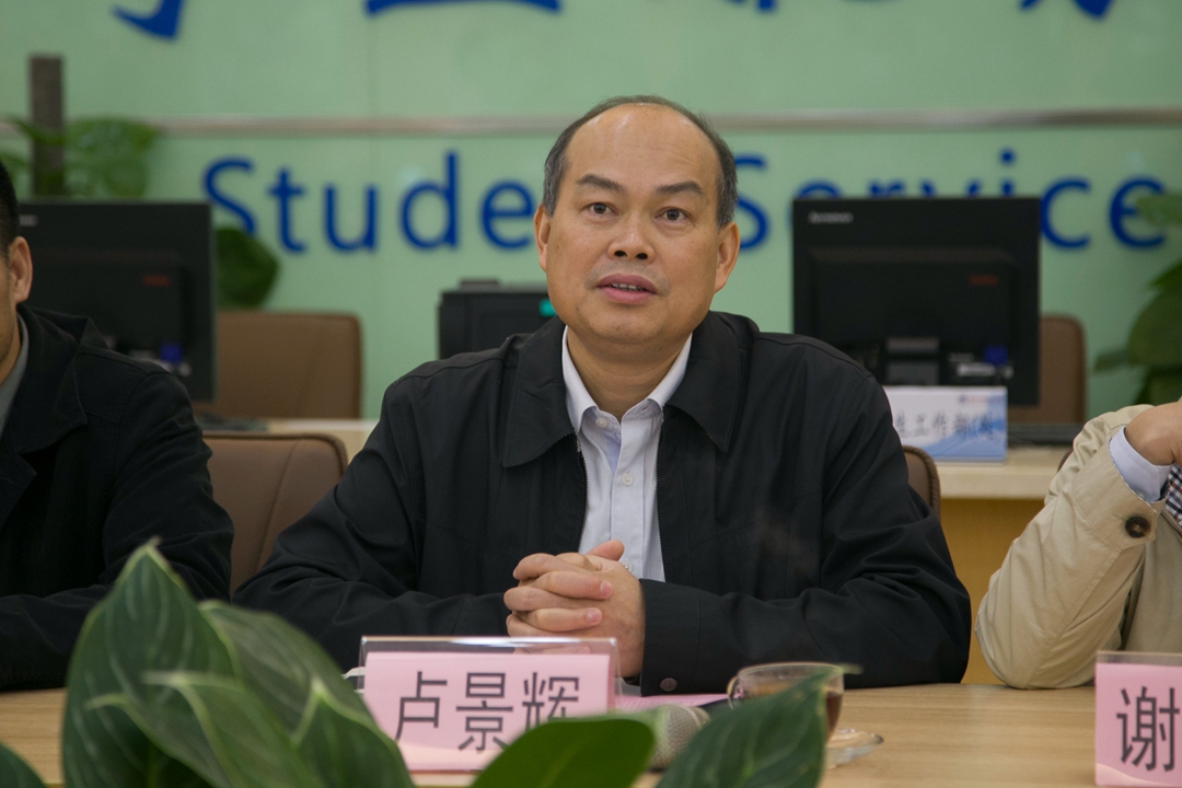 我校党委副书记卢景辉、学生工作部(处)部长谢应东、后勤处处长杨思及党校办、团委、教务处等相关职能部门负责人在北校区学生服务大厅与来宾进行交流。交流会由谢应东主持。