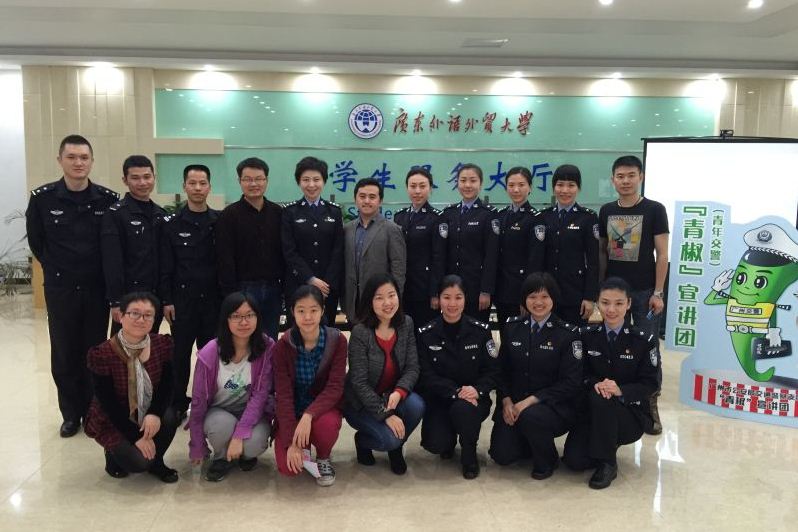 本网讯 3月16日和3月24日,广州市公安局交警支队团委组织“青椒宣讲团”分别在我校北校区学生服务大厅和南校区F座架空层开展“青椒进高校,交通零意外”便民宣传活动。