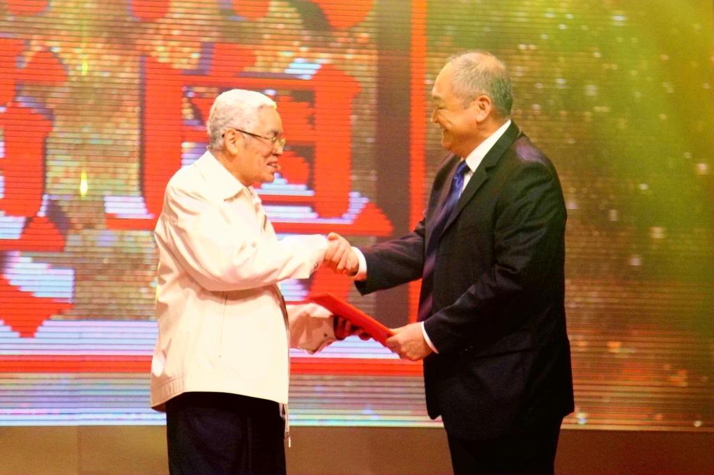黄建华获颁“南粤楷模”,上图为原中山大学校长黄达人为黄建华颁奖