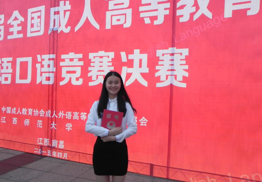 本网讯 4月26日,中国成人教育协会成人外语高等教育专业委员会第二届全国成人高等教育英语口语竞赛决赛在江西师范大学瑶湖校区隆重举行。我校继续教育(公开)学院黄玉珊同学以总分第一的成绩获得本科组一等奖,宋玉霞同学获得专科组二等奖。
