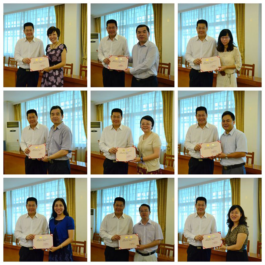 仲伟合为我校2015-2016年高等教育兼职研究员代表颁发聘书