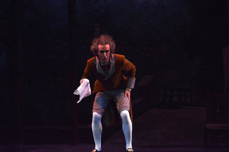第二幕呈现了截然不同的舞台背景,演员们精湛的演技、灵巧多变的芭蕾动作,使得演出出现了一个又一个高潮。斯旺尼达尔带领姑娘们偷偷溜进了葛佩琉斯博士的家里并发现了葛蓓莉亚的木偶身份。