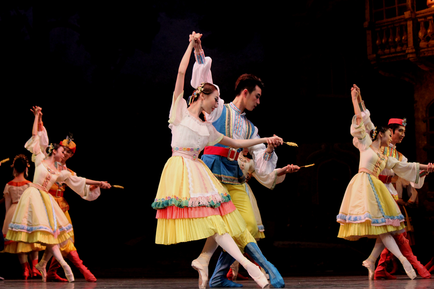 而在第三幕《婚礼》中,“村民们”纷纷前来观礼,祝福“新婚夫妇”弗朗兹、斯旺尼尔达。婚礼充满浓郁的欧洲民族风情,色彩斑斓的欧洲民族服装与极具地域风情的波兰玛祖卡舞、匈牙利恰尔达什舞、西班牙舞、意大利舞交相辉映。众多演员共同起舞,舞蹈与音乐之间完美契合,令观众们叹服不已,阵阵雷鸣般的掌声响彻云山会堂。