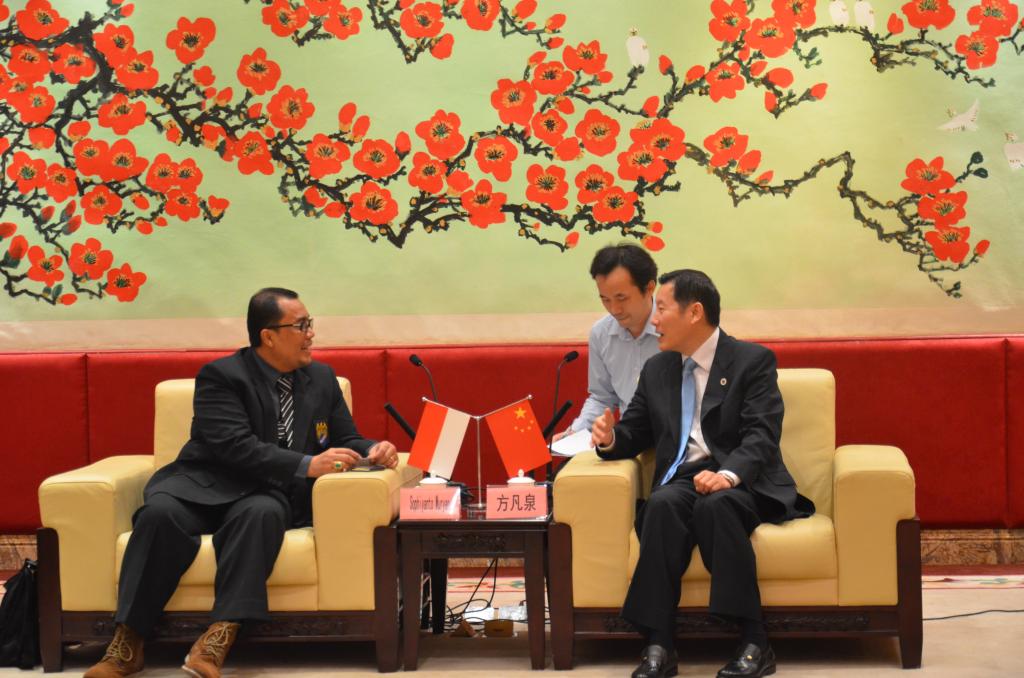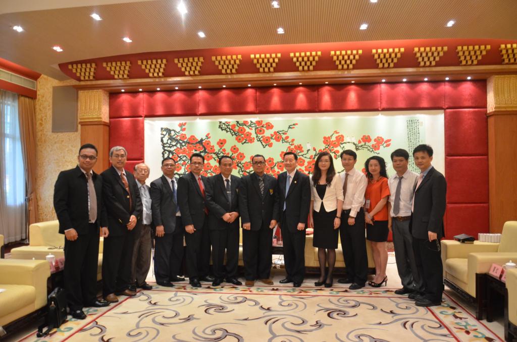 本网讯5月7日,印尼大学生教育与出版基金会(YPPMI)主席Sophiyanto Wuryan,印尼爪哇金融大学校长Hasan Abdul Rozak,副校长Taswan,发展与提升机构主任R. Basiya等一行8人到访我校。我校副校长方凡泉会见了来访客人,国际处处长蔡红、中文学院院长伍方斐以及印尼语系退休教授印尼爪哇金融大学联络人蔡金城等陪同会见。