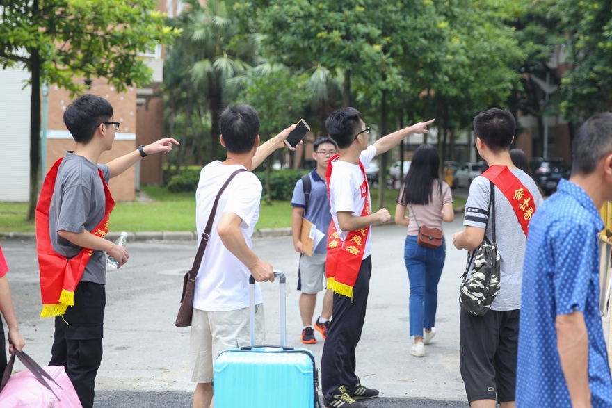 热情的志愿者队伍,为新生和家长细心指路