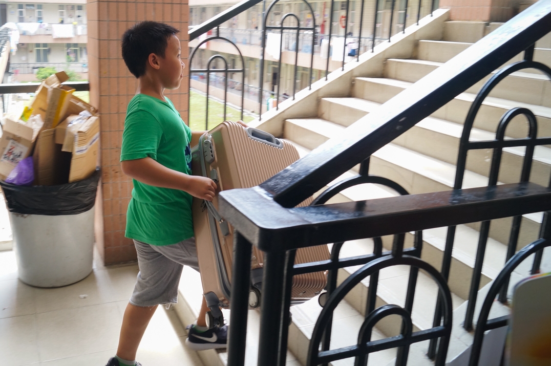 “姐姐,我来帮你扛箱子!”