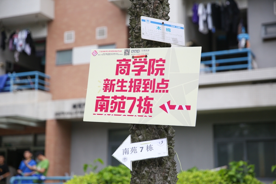 各个学院的师兄师姐早已贴心地为新生挂好引路牌