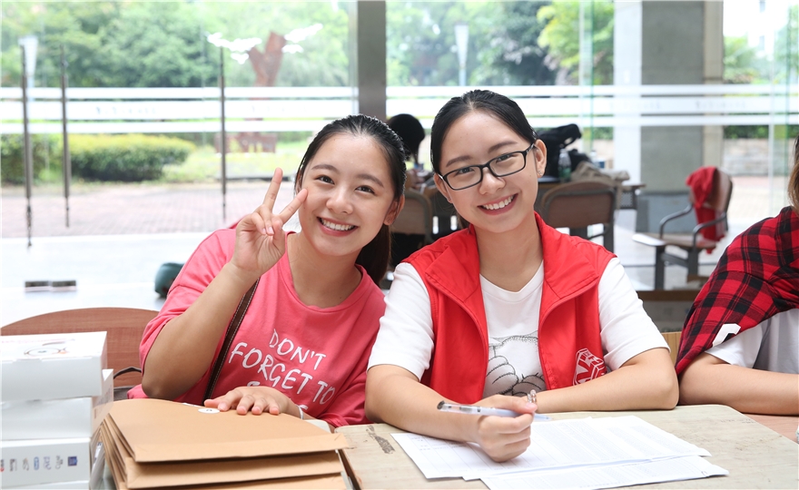 广外志愿者们用灿烂的笑容迎接师弟师妹