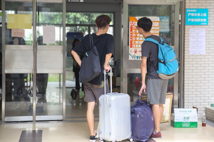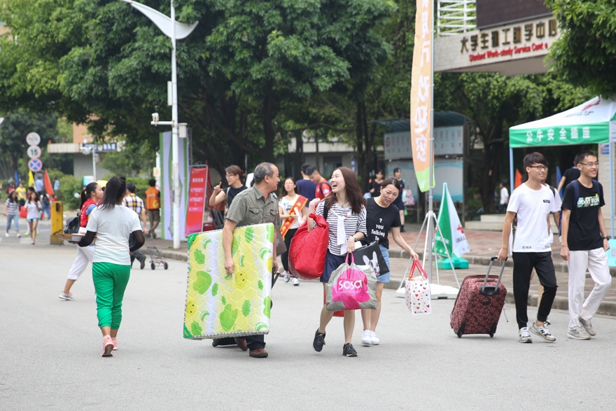 也有一些新生与好友相伴,一同来到学校报到