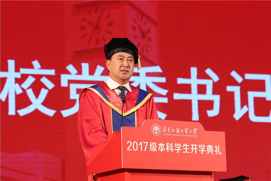 隋广军在致辞说,广外在五十余年的办学实践中,积淀了厚重的文化底蕴,形成了放眼全球、融通中西的办学特色,锤炼了勇挑重任的精神品格,为年轻的学子实现理想抱负搭建广阔的舞台。广外的精神,植根于深厚润泽的历史底蕴。一代代广外人践行着“求真务实、行胜于言”的理念,形成了“崇尚学术、求真求知”的传统,这些历经风雨洗礼、沉淀下来的精神气质,筑起广外厚实的文化底蕴,深刻地影响着每一位广外人。广外的内涵,彰显着融通中西的办学特色。“国际化”已成为广外最核心、并得到社会公认的最重要的办学特色。广外的格局,表现在奉献家国的责任担当。长期以来,广外发挥学科专业及人才培养的优势,服务国家和地方经济社会发展。