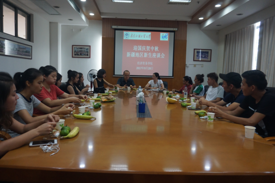 本网讯9月28日下午,经济贸易学院在南校区院系楼301召开12名新疆地区新生“迎国庆贺中秋”座谈会。座谈会上,学院了解了新疆新生们大学生活的适应情况,并解为他们答疑解惑。