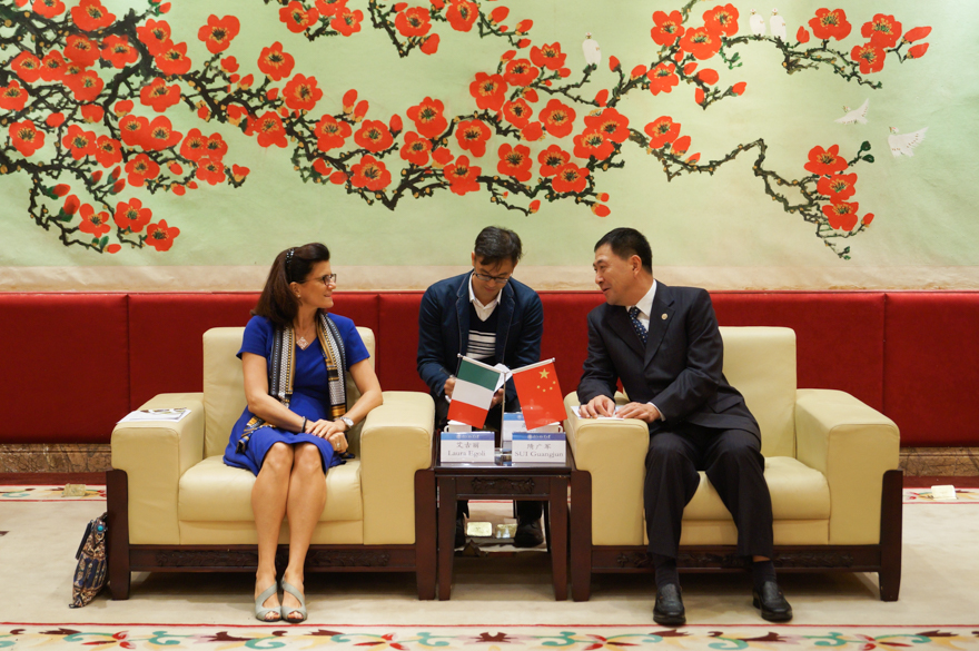 隋广军对总领事馆在我校意大利语系学生培养及文化传播方面所提供的支持表示感谢,并提到意大利语在我校26个外语语种当中深受学生喜爱,期待在意大利政府的支持下,我校意大利语人才培养能有更多的发展空间。