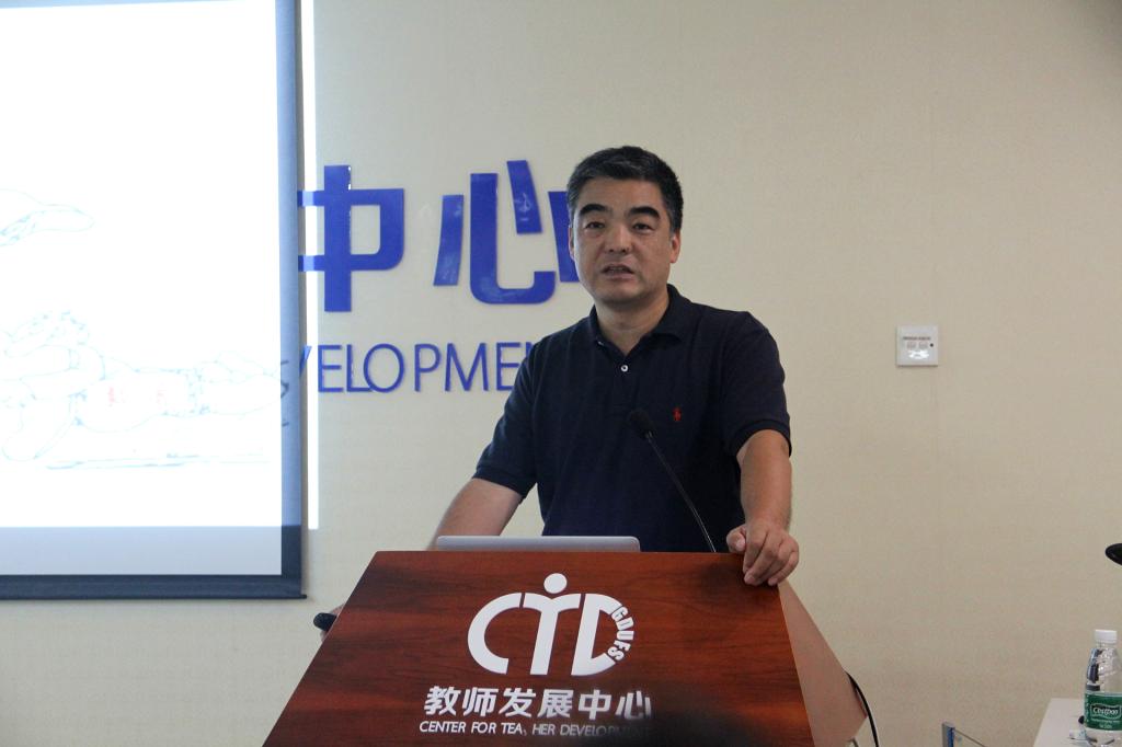 本网讯 10月12日,“用技术创建互动课堂”讲座在教师发展中心多功能会议室举行。华南师范大学博士生导师、未来教育研究中心主任焦建利用贴合生活的例子及丰富的多媒体材料,从开放世界中的学校教育的角度,围绕一个二维码讲述如何利用手机创建互动课堂,运用技术促进科学研究以及用慕课实现教师专业发展。
