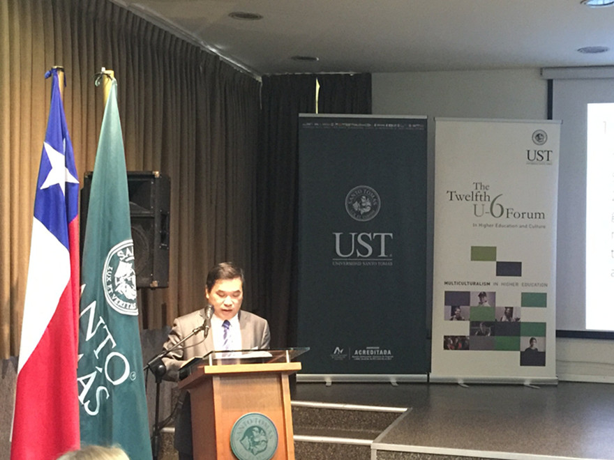 10月13日,焦方太一行来到智利的特木科,参加由智利圣托马斯大学主办的第12届U6论坛。焦方太代表我校首先做大会发言,畅谈多元文化与高等教育国际化。与会期间,代表团一行还积极与来自圣托马斯大学、台湾岭东科技大学、台湾文藻外语学院等高校的与会代表展开互动和交流。在与圣托马斯大学代表商谈后,双方同意开展本科双学位项目,加强科研学术合作,进一步推动我校拉美研究中心建设。