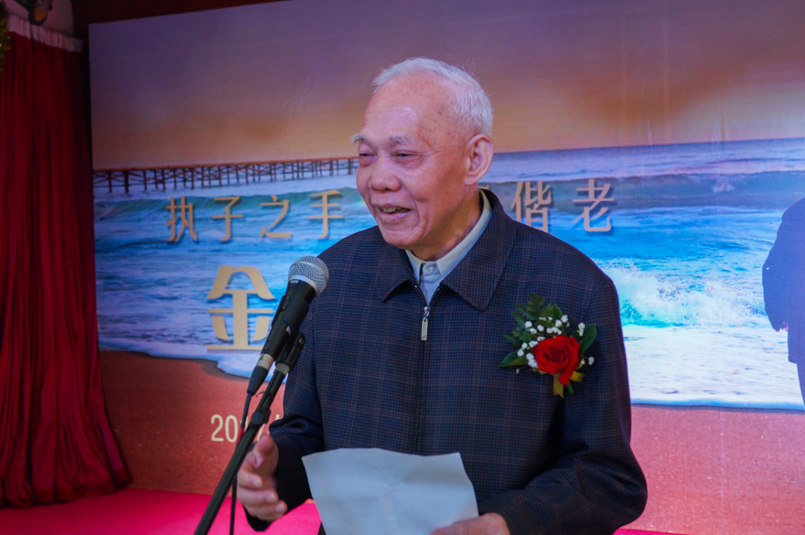 我校国际商务英语学院党委书记王秀民作为钻婚金婚夫妇离退休前原单位负责人代表,对老同志们在退休前为高等事业的发展兢兢业业勤奋工作以及退休后也仍关心学校发展表示感谢。