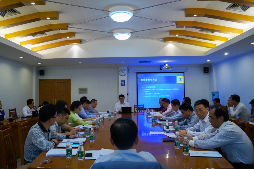 教务处处长、招生办主任袁长青就我校2017年本科招生工作做总结报告。他详细分析了我校今年本科招生录取的整体情况,提出了现阶段学校招生工作面临的问题和挑战,并就如何进一步改进招生工作提出了一系列建议。