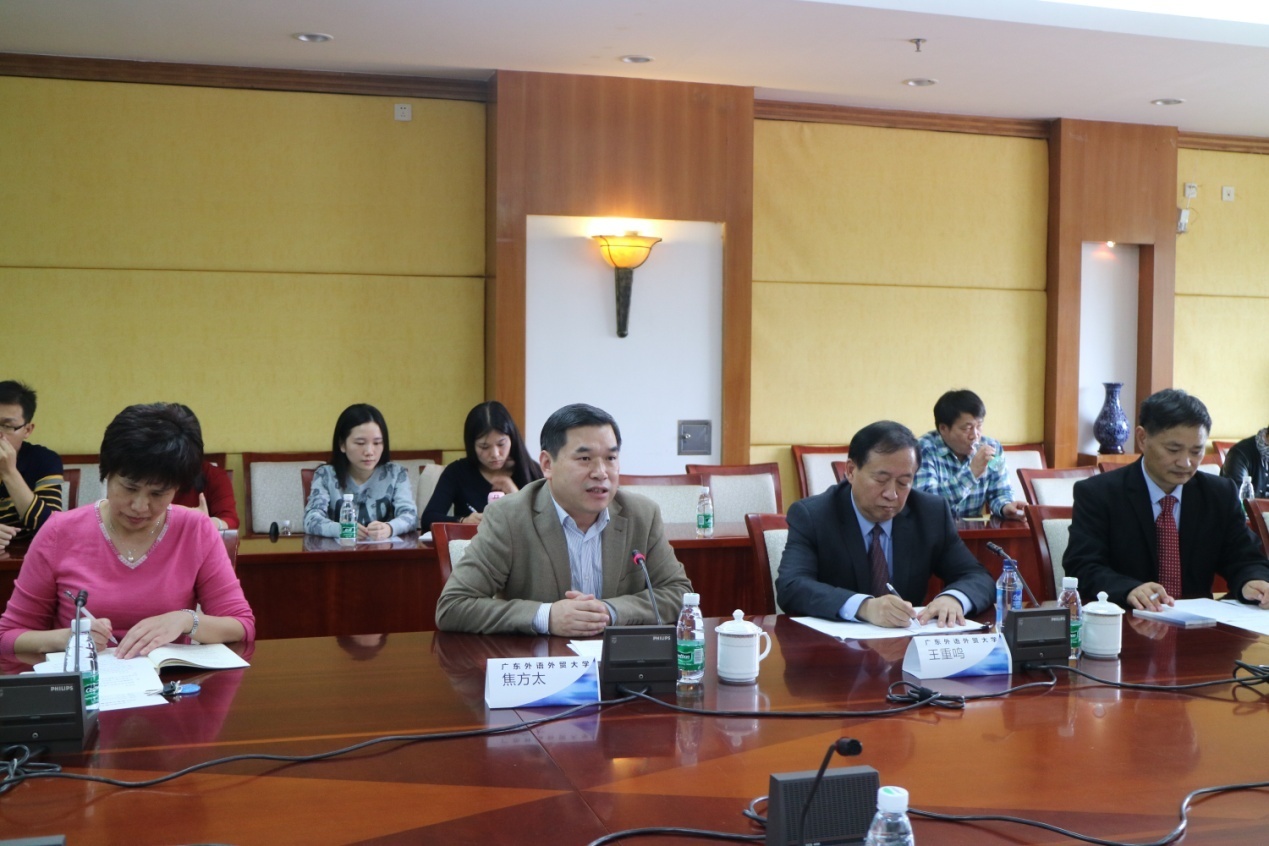 本网讯 11月8日下午,商学院在南校区行政楼会议室召开MBA教育及学科建设战略研讨会,会议特邀AMBA(Association of MBAs,英国工商管理协会)国际认证组织中国区总负责人、浙江大学文科资深教授王重鸣莅临指导。会前,学校党委书记、校长隋广军会见了王重鸣,深入交流了商学院MBA教育与学科发展的未来趋势,并就在广外建立国际丝绸教育联盟基地等事宜进行了广泛地交流。