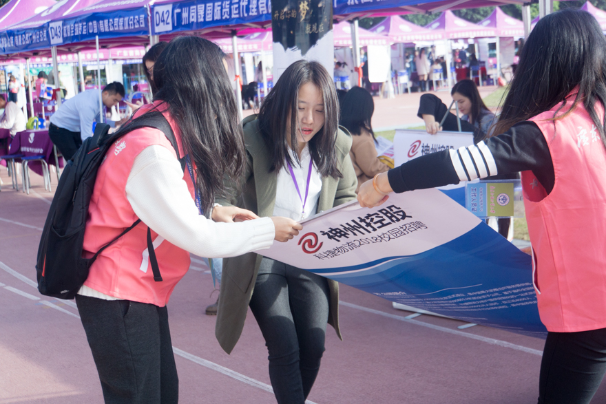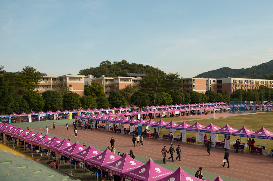 本网讯 12月2日上午,由省教育厅主办、我校承办的广东省2018届高校毕业生就业供需见面会(外语、外贸、涉外、管理类专场)在白云山校区田径运动场举行。本次供需见面活动吸引了280家用人单位到场,包括广东新南方集团有限公司、广东省外贸开发有限公司、国泰君安证券股份有限公司、广州南方投资集团有限公司、建智控股集团、香港中国电信国际有限公司深圳代表处、富士施乐(中国)有限公司上海分公司、米高蒲志(上海)才服务有限公司、广州市广百股份有限公司等知名企业。参会单位向毕业生提供近5000个就业岗位,涵盖外语、国贸、管理、经济、计算机、营销、教育、法学、新闻、广告等专业,更有企业开出了40万年薪诚聘毕业生。供需见面会吸引了众多全国各大高校的毕业生前来求职应聘。