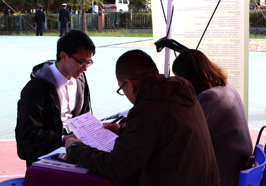 本次供需见面会现场气氛热烈,用人单位面试官与应聘者形成良好的互动关系。为保证活动的顺利进行,学校在各方面都做了充分准备,一是成立毕业供需见面活动领导小组,确保组织工作和安保工作的扎实推进;二是从用人单位报名、审核到应聘毕业生入场,全程采用“互联网+”模式,提高工作效率的同时也保障了应聘毕业生权益;三是提供贴心细致的服务,如为应对冬季长时间的户外面试,学校专门提供了免费供应的姜茶,温暖参会用人单位和毕业生。