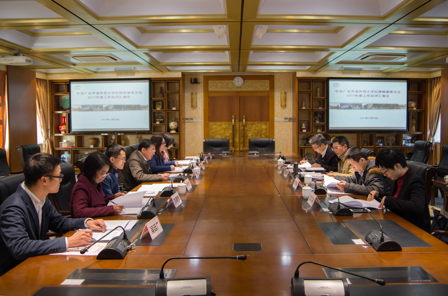 李云明代表学校纪委从履职情况、规范化建设和努力方向等方面向检查组作了全面汇报。随后,检查组通过查阅材料、交流询问、现场查验等形式,逐一对照评价指标体系对我校纪委工作进行了严肃认真的检查。