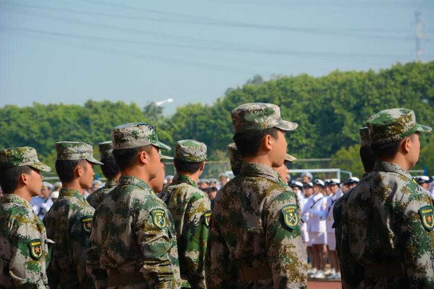 出席大会的还有广州市番禺国防教育训练基地训练部副主任李秀平,以及我校军训工作领导小组成员、各部处、各学院的领导和老师们。我校军训旅政委、武装部部长何越晖和军训旅政委、学生工作部部长谢应东分别主持了南北校区的汇演。