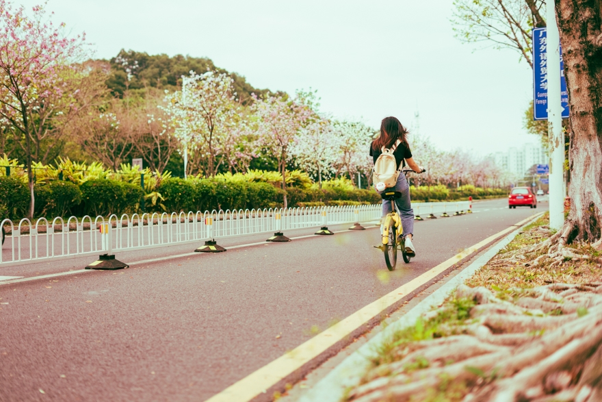 骑小黄车穿梭在生活区与教学区之间。