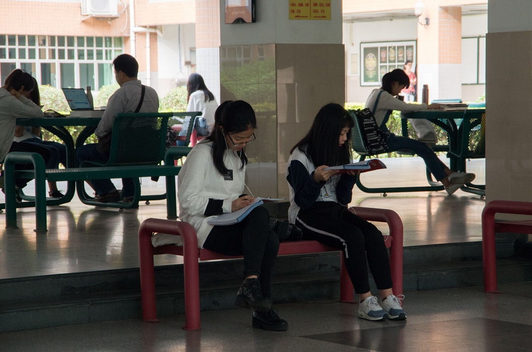 校园里的学生行色匆匆。