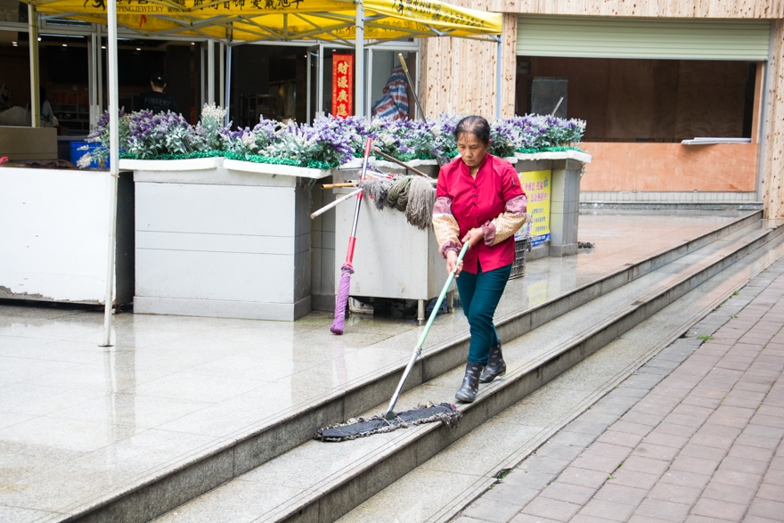 保洁阿姨一丝不苟地工作,为我们提供干净舒适的校园环境。