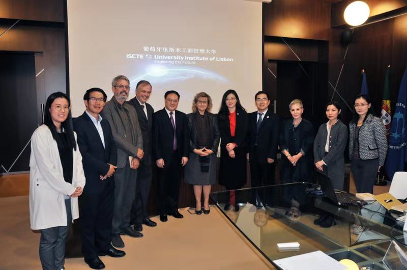在里斯本工商大学,石佑启与Maria das Dores Guerreiro副校长、金融学院Jose Paulo Esperança院长、中国项目主任Virginia Trigo教授、市场学系Nelson Antonio教授、中国项目执行主任马少壮副教授等进行会谈。两位校长高度赞赏两校多年的友好合作,双方就继续拓展两校在对应学科的深度合作、深化两校教师和研究人员交流互访、推荐更多优秀广外学生来该校学习、在国际学院增设2+2项目、推荐更多外校学生到该校学习等达成共识.