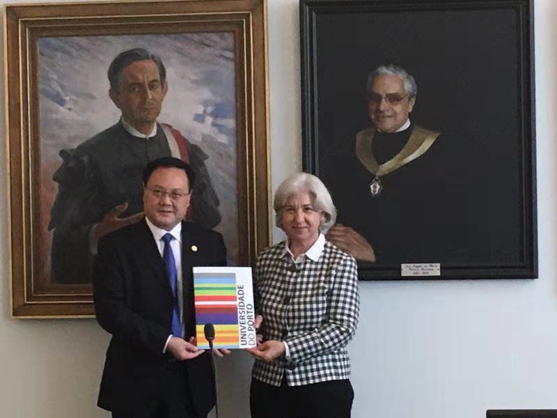 在波尔图大学,石佑启与Maria de Lurdes Correia Fernandes副校长全面介绍了两校情况,并签署两校合作备忘录。Antonio Silva Cardoso副校长陪同代表团参观了拟与广外合作建设的孔子学院的场地。