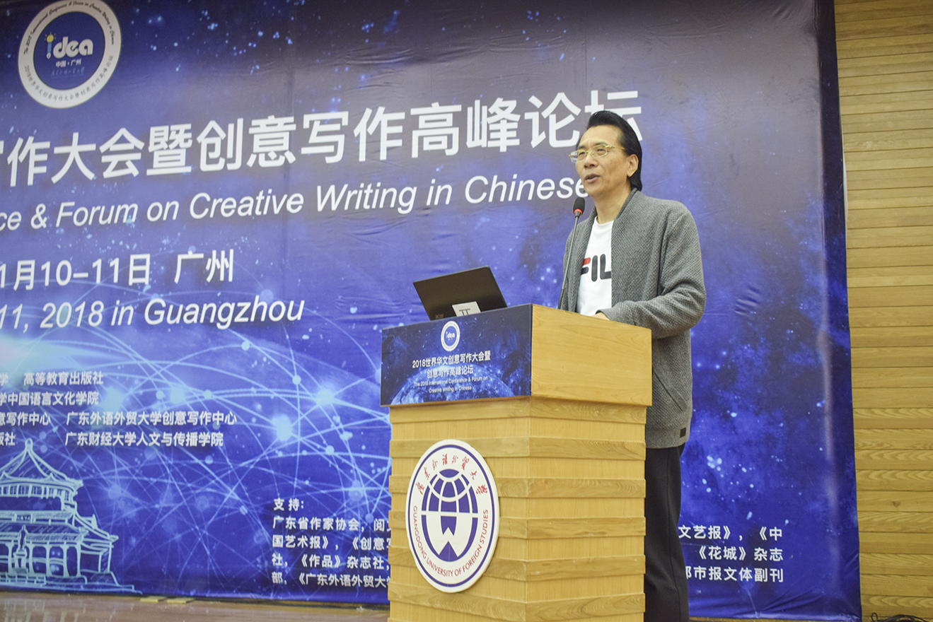 阳爱民在致辞中介绍了广东外语外贸大学的基本概况以及创意写作学科的发展现状。他提到,2012年广外成为大陆第一家正式开始招收创意写作专业方向本科生的高校,积极开展与创意写作有关的专业改革实践,同时成立了创意写作中心,聘请国内外近百余名学者、作家担任创意写作中心导师,举办创意写作文学周、夏令营和冬令营等活动,建设国内外创意写作基地,大刀阔斧地进行创意写作专业建设,并取得了一些可喜的成果,在国内外同行中,享有很高的知名度和美誉度。