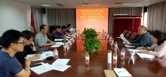 本网讯 11月5日,图书馆党总支中心组在北校区图书馆四楼会议室举行学习贯彻习近平总书记视察广东重要讲话精神学习会,馆领导、党总支委员参加会议,各支部书记、组织员等也参加了学习会。