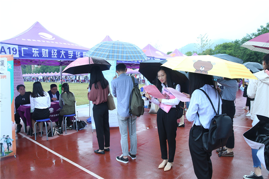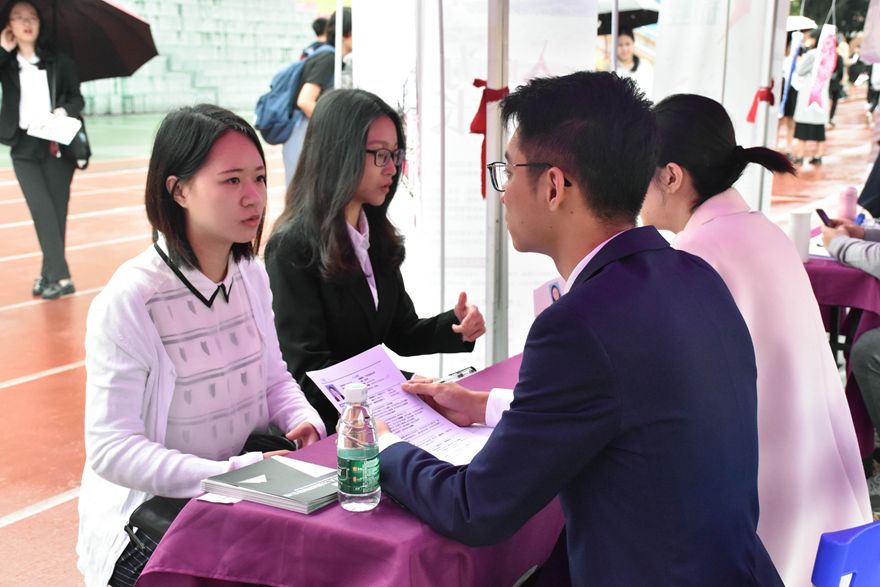 本网讯 11月17日上午,由广东省教育厅主办,我校承办的广东省2019届高校毕业生就业供需见面会(一带一路人才暨外语外贸管理类专场)于我校北校区田径运动场举行。本次见面会吸引了200多家用人单位到场,包括南方航空、招商证券、比亚迪、捷普电子、苏宁易购、神州优车、宁波银行深圳分行和广外外校等优质用人单位,提供近5000余个就业岗位,岗位涵盖外语、外贸、教育、经济、管理、计算机、艺术等专业,吸引了众多的高校应届毕业生前来求职应聘。
